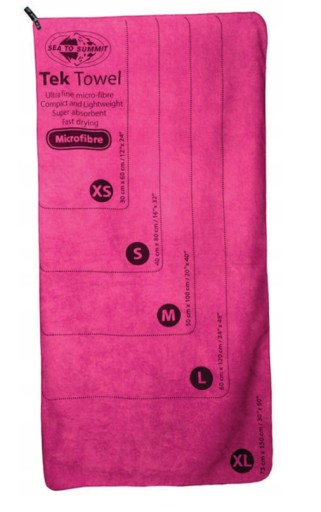 Рушники Tek Towel з мікрофібри дарують відчуття розкоші. Дуже поглинаючі та швидковисихаючі, вони забезпечать комфорт під час подорожі, у спортзалі чи на пляжі. Ними навіть можна витирати собаку після купання. Вони упаковані в нейлонову овальну сітку, що закривається на блискавку. Рушники Tek доступні в таких розмірах: X Small (30 x 60 см), Small (40 x 80 см), Medium (50 x 100 см), Large (60 x 120 см) і X Large (75 x 150 см).