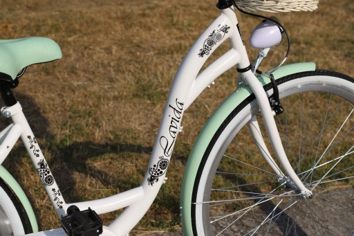 - Сідло: м'ята в комплекті велосипеда. Можна замінити на білий без малюнка, білий з принтом сріблястих квітів або темно-коричневий