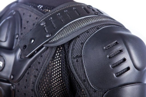 Широка броня з додатковим захистом ключиць. Підвищена щільність композиту, з якого виготовлені захисні панелі. Опорна частина виконана з швидковисихаючої сітки. Додаткове регулювання обхвату грудей і силовий ремінь дозволять броні ідеально сидіти на будь-якій фігурі.