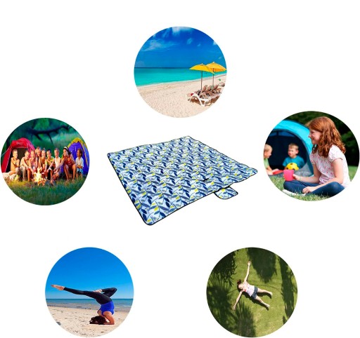 Ви також можете взяти ковдру для пікніка на пляж. Він довговічний і дуже практичний. У складеному вигляді займає мало місця, а ручка забезпечує зручне перенесення. Ковдра після складання застібається на липучку.