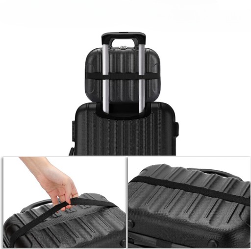 Косметичка має дві ручки з жорсткого пластику. Чохол також має еластичну стрічку з одного боку, яка використовується для кріплення, наприклад, до ручки валізи