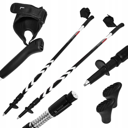 Палиці мають систему протиударної амортизації та діапазон регулювання висоти від 100 до 135 см (у складеному стані: 80 см) та систему фіксації.
