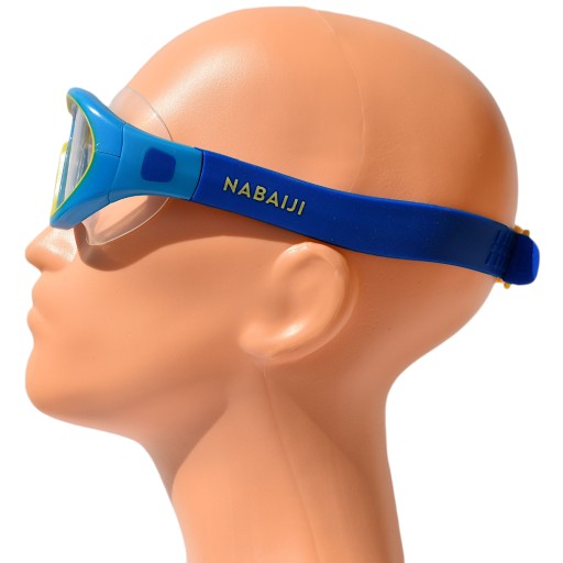 Панорамна дитяча маска для плавання Swimdow V2 S, протизапотівання, регульована, еластична та м'яка, полікарбонатні лінзи - синього кольору.