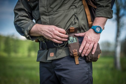Сумка для компаса/виживання — це кишеня, що пристібається на поясі, призначена для носіння більшості моделей компаса або елементів набору для виживання. Використовуючи систему MOLLE/PALS, ми також можемо прикріпити його до ременів, платформ і нагрудних кріплень, наприклад, Chest Pack Numbat. Конструкція, посилена спеціальною піною, і регульований клапан із застібкою 20 мм фіксують предмети, що переносяться. Компас можна додатково прив'язати до кишені завдяки отвору всередині. У кишеню помістяться невеликі засоби виживання, наприклад т.зв. контейнер для виживання або елементи для розпалювання вогню, які містяться в SCOUT Tinder.