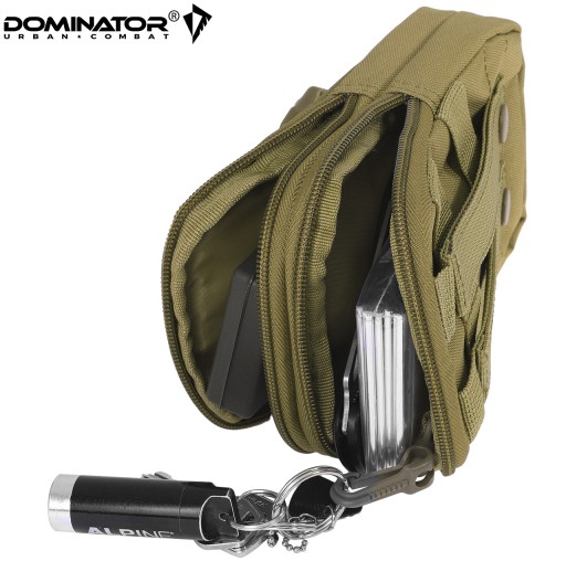 Додатково на лицьовій частині контейнера є гнучка кишеня для телефону або компаса, що закривається на суцільну пряжку, застібка додатково фіксується липучкою. Піднос також має невелику вертикальну кишеню для ручки, ліхтарика або ножа з кліпсою. Завдяки системі MOLLE його можна прикріпити до ременів, рюкзаків або набедренних сумок.