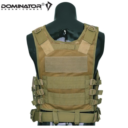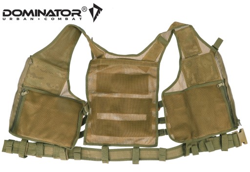 Тактичний жилет Huzar, польський бренд DOMINATOR®. Бренд DOMINATOR® забезпечує дуже високу якість виготовлення на основі військових специфікацій, твердих матеріалів і передових технологій. Він виготовлений з міцного поліестеру, що робить його стійким до розривів і розривів. Сітчаста конструкція забезпечує повітропроникність і комфорт при носінні. Жилет регулюється завдяки трьом лямкам в бічних частинах (регулювання по окружності) і вертикальним широким лямкам на плечах, які регулюються за допомогою липучок (регулювання по висоті). На задній частині є система MOLLE з чотирма ременями та панеллю Velcro, що дозволяє використовувати емблеми, знаки розрізнення, нашивку моралі та назви підрозділів.