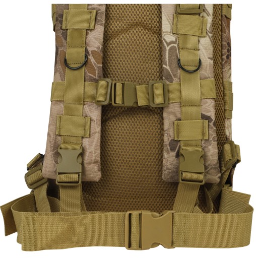 Компенсаційні лямки, розміщені з боків і знизу, дозволяють підлаштувати розмір рюкзака під вантаж, що переноситься, і прикріпити додаткове спорядження.