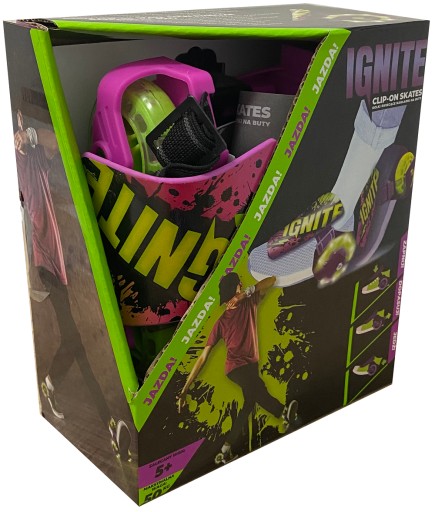 З роликовими ковзанами Ignite Clip-On Skates миттєво перетворите своє взуття на роликові ковзани та насолоджуйтесь катанням та задоволенням! Колеса мають підсвічування за спеціальною технологією, завдяки якій вони світяться під час руху, створюючи приголомшливий ефект!