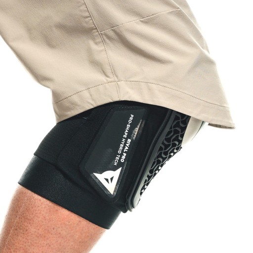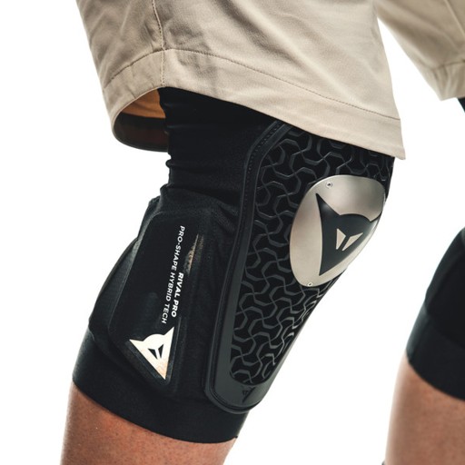 Сімейство протекторів Dainese Rival було розроблено, щоб забезпечити максимальний опір і захист, а також виняткову свободу їзди без обмежень. У поєднанні з гнучкістю та повітропроникністю технології Pro-Shape 2.0 він гарантує відмінну свободу рухів під час будь-якої діяльності, від найекстремальніших спусків до підйомів, забезпечуючи користувачеві найвищий рівень безпеки в будь-який час. Ніколи не відчуває потреби опускати чи знімати їх. Сталева пластина в центрі коліна, натхненна костюмами Dainese MotoGP™, забезпечує підвищений захист від будь-яких проколів гострими предметами, такими як каміння та коріння. Основний протектор на Pro-Shape 2.0 забезпечує велику гнучкість і захист завдяки карбоеластомерній конструкції, натхненній геометрією ауксетичних матеріалів, знайдених у природі. Відкрита структура на 45% всієї поверхні гарантує найвищий рівень вентиляції та комфорту в будь-якій ситуації. Крім того, зовнішні захисні опори забезпечують захист колін у разі удару. Положення та стабільність на кожній фазі діяльності гарантуються вбудованою, гнучкою та довгою конструкцією, яка забезпечує чудову вентиляцію та повітропроникність.