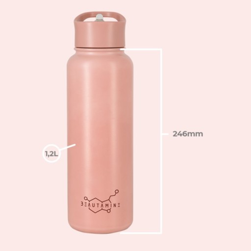 Пляшка для води Beautamine має ємність 40 рідких унцій, що становить приблизно 1,2 літра.