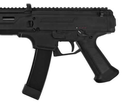 Електрична копія пістолета-кулемета CZ Scorpion EVO 3 A1 B.E.T. Карабін виготовлений із армованого скловолокном полімеру та металу. Основна конструкція корпусу, передня рукоятка, направляючі RIS, складаний приклад, пістолетна рукоятка і магазин виготовлені з пластику. Інтегральний глушник, штифти і гвинти, важіль заряджання і кнопка фіксатора затвора виготовлені з металу.