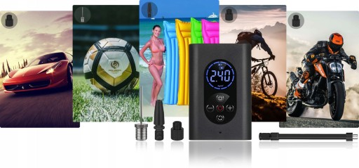 Електричний насос, представлений у цій пропозиції, є неймовірно універсальним. Він з легкістю надує м'ячі, колеса велосипедів, автомобілів і різні види матраців.