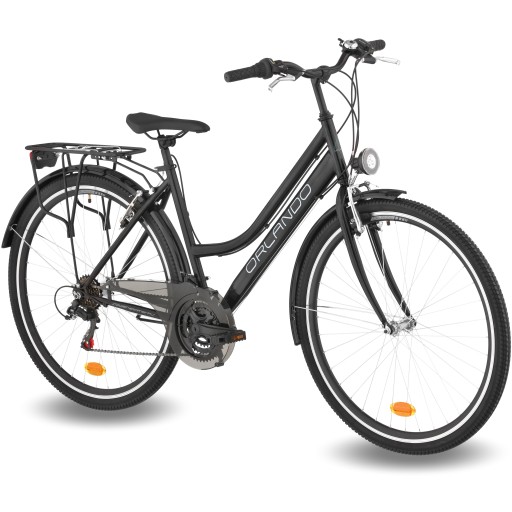 ORLANDO TREKKING - нова модель, створена спеціально для нового сезону. Він підходить не тільки для міської їзди, але і для поїздок вихідного дня за місто. Трекінговий варіант дозволяє комфортно кататися незалежно від умов і покриття. Дуже добре керує лісовими дорогами та бездоріжжям. Фабрика багата переднім і заднім освітленням, стійкою, бризковиками та підставкою для велосипеда.