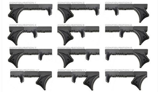 Набір складається з елементів з текстурованого полімеру чорного кольору, сумісних як з системами M-LOK®, так і з KeyMod. Високі протиковзкі властивості завдяки використаним ребрам.