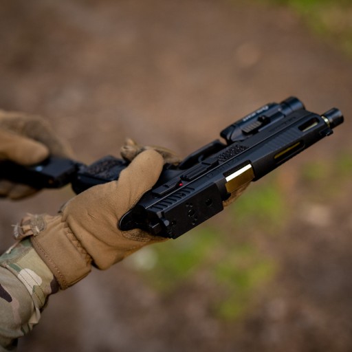 Газова копія пістолета CZ P-09 Optic Ready з металу та пластику. Замок, ствол, спусковий гачок і механічні елементи виготовлені з металу, а корпус рушниці - з міцного пластику.
