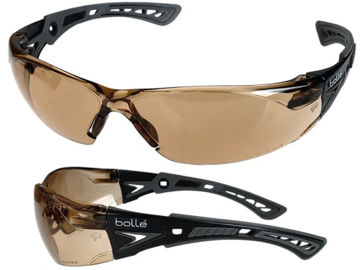 Легкі сонцезахисні окуляри Bolle Rush Safety Twilight PC з механічною міцністю лінз дозволяють захистити очі від осколків, рикошетів та інших налітаючих предметів. клас F (об'єкт масою 0,86 г, що рухається зі швидкістю 45 м/с) і Т (гарячі частинки).