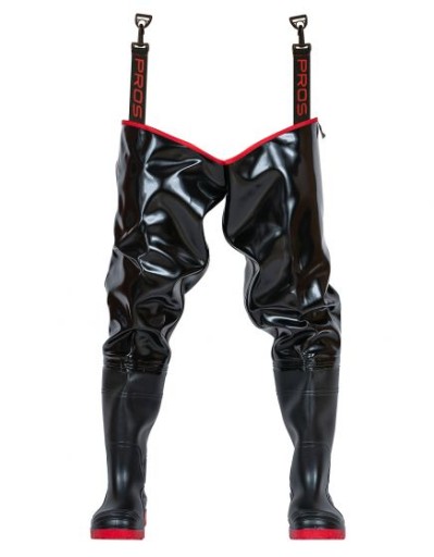 Вейдерси з підвищеною стійкістю до механічних пошкоджень, з незнімно привареними якісними нековзкими гумовими черевиками. Виготовлений з водонепроникного, міцного матеріалу, який забезпечує ефективний захист кінцівок від вологи. Технологія двостороннього зварювання підвищує міцність швів. Оснащений зручними гумовими опорними кріпленнями.