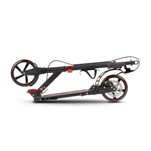 Механічна функція, яка дозволяє складати самокат, є дуже корисним і зручним удосконаленням у подорожах. У складеному вигляді транспортний засіб займає набагато менше місця, і ви можете брати його в автобус або поїзд, не турбуючись про брак вільного місця. Ручка встановлена паралельно платформі, завдяки чому форма не нагадує букву «L». Його буде легше покласти в багажник і взяти в далеку дорогу, наприклад у відпустку.