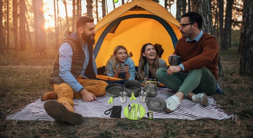 У комплект поставки входить: 1 × чайник + 1 × сковорода + 1 × каструля + 2 × чашки + 1 × ложка, виделка та ніж + 1 × сумка з тканини Oxford
