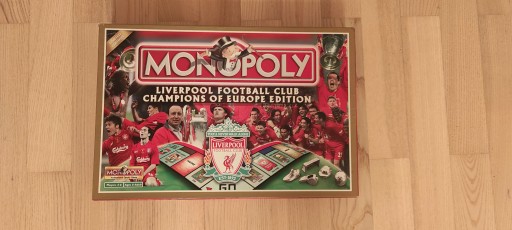 Monopoly, обмежене видання, випущене на честь перемоги Ліверпуля в Лізі чемпіонів у 2005 році. Справжній унікальний предмет, блискучий предмет для вболівальників/колекціонерів Ліверпуля/любителів настільних ігор і футболу. Все англійською. Гра не використовувалася, елементи всередині (картки, банкноти) ще в оригінальній фользі. Єдиний недолік - мінімальне потертість коробки.