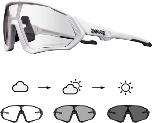 【Фотохромні велосипедні окуляри】 Лінзи автоматично змінюють колір від прозорого до темно-сірого у відповідь на інтенсивність ультрафіолетового випромінювання, ефективно зберігаючи відповідну яскравість для захисту ваших очей під яскравим сонячним світлом.