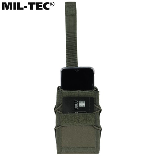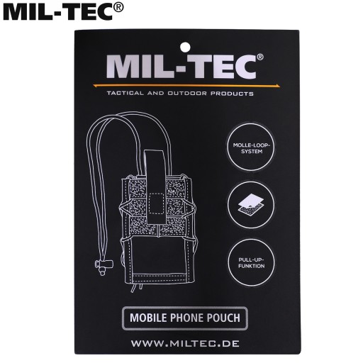 Підсумок в системі кріплення MOLLE/PALS. Продукт німецького бренду Mil-Tec. Сумка служить захисним чохлом, який також дозволяє швидко дістати смартфон. Модульна система дозволяє носити його на тактичному жилеті, модульному або звичайному поясі. Шнурок на шиї дозволяє носити смартфон таємно під одягом. Обкладинка рекомендована офіцерам, солдатам і любителям активного відпочинку. Сумісний з більшістю сучасних смартфонів.