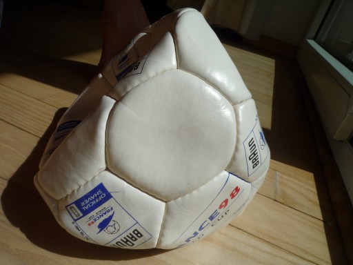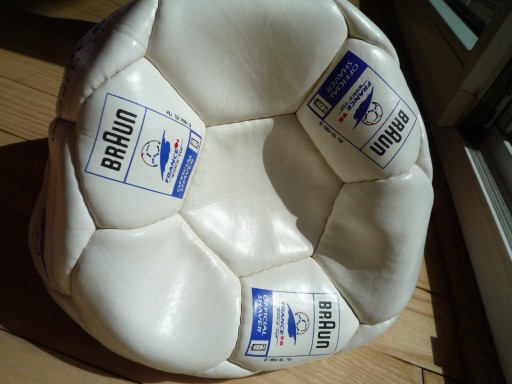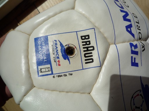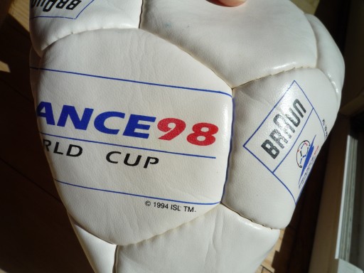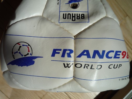 1) Футбол із ЧЕМПІОНАТУ СВІТУ 1998 FRANCE98 BRAUN. М'яч не був битий і зберігався в шафі 20 років (візуальний стан: дуже хороший). Я не знаю, чи можна його накачати і навіть яким насосом. Тому пропоную як пошкоджену.