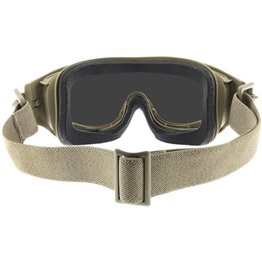 Google оснащено двома змінними візорами, виготовленими з полімеру Selenite, із чудовою оптичною якістю та відповідністю стандартам ANSI, EN166 і військовим стандартам балістичного захисту V0. Останній стандарт вимагає, щоб окуляри витримували кулі калібру 5,56 мм, що рухаються зі швидкістю 594-612 км/год. Козирок додатково має сертифіковане покриття проти запотівання зсередини, що обмежує явище відкладення водяної пари на козирку. Зовнішня частина має покриття T-SHELL ANTI SCRATCH, яке зменшує подряпини та значно продовжує термін служби козирка. У комплект входять два візора різних кольорів, тому ви можете легко налаштувати окуляри відповідно до мінливих тактичних ситуацій, умов навколишнього середовища чи освітлення. Система кріплення окулярів заснована на гнучкому регульованому ремені, який кріпиться до рами за допомогою двох обертових засувок. На ремені також є наскрізний протектор для захисту окулярів, коли вони не використовуються.
