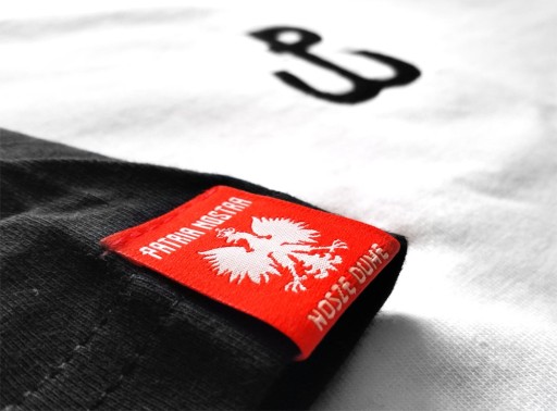 На додаток до наших постійних доповнень у вигляді фірмових жаккардів і нашивок, футболка збагачена чорною стрічкою, яка зміцнює верхню частину футболки. Сорочку доповнює білий світшот. Рукава виконані в крої реглан. Футболка має власний унікальний крій, зроблений з нуля. Виготовлена з матеріалів найвищої якості від польських постачальників.