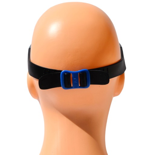 Зручне регулювання і регулювання маски для плавання за допомогою ребристого ремінця і пряжки ззаду.