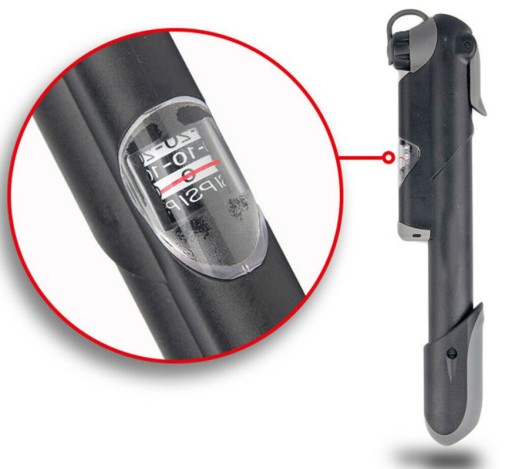 Насос оснащений індикатором тиску за шкалою 100 PSI - 6,89 бар, який допоможе вам ефективно та правильно накачати кожне колесо.