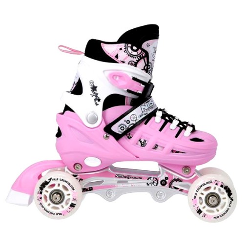 Роликові ковзани NH10905 - це справжнє задоволення від катання. Завдяки можливості перенесення додаткового колеса на задню вісь, роликовий ковзан функціонально перетворюється на роликовий ковзан. Таке рішення допоможе самим маленьким фігуристам зробити перші кроки в цьому виді спорту. У свою чергу, установка додаткового колеса на передню вісь перетворює виріб на роликовий ковзан.