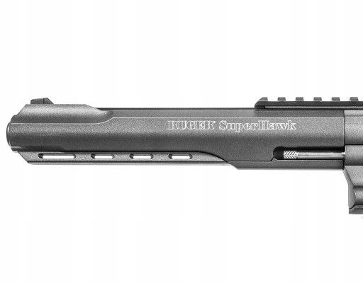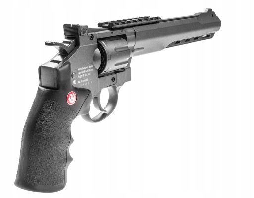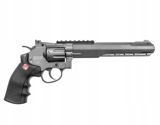 Важка, суцільнометалева, ліцензована копія револьвера Ruger Superhawk 8", що працює на газу CO2 від 12-грамового патрона, розміщеного в рукоятці, що створює початкову швидкість кулі 650 FPS. Револьвер має ліцензійне маркування Sturm, Ruger & Company, Inc.