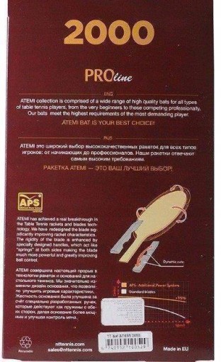 Біта для настільного тенісу Atemi 2000 PRO-line - це якісна модель, яка добре працюватиме як під час розважальних ігор, так і в руках професіонала,