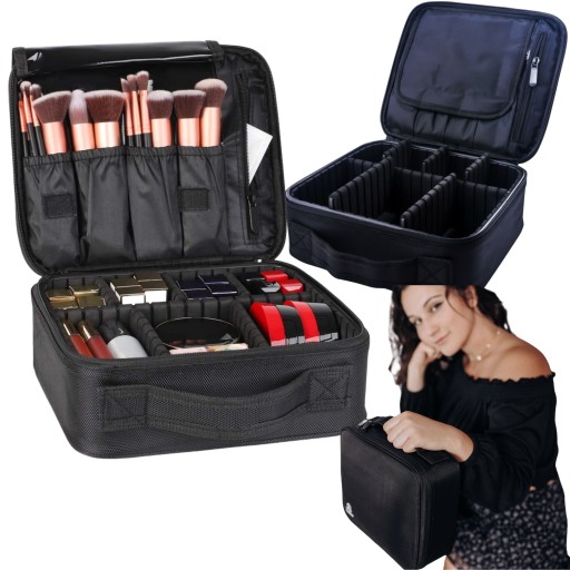 - ✅Практично - завдяки регульованим відділенням ви можете самостійно планувати свій простір. Всередині є велика кишеня на блискавці, в яку можна покласти палітру тіней, дзеркало та 4 практичні кишені, в які можна покласти, наприклад, пензлі, помаду.