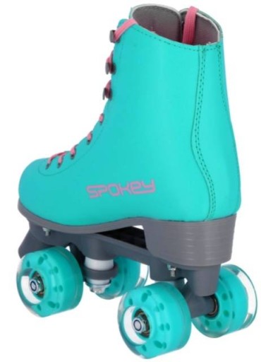 Весь він розміщений на композитній рамі. У MIRRA спереду прикріплено гальмо з ТПУ, а це означає, що для гальмування достатньо трохи нахилити ногу вперед, щоб торкнутися поверхні, по якій ми рухаємося. Роликові ковзани, повні стилю та пристрасті. Роликові ковзани Spokey MIRRA - це не лише якість та комфорт катання. Це також вишуканий дизайн, який виділить вас! Класичний стиль порушується пастельними акцентами та естетичною обробкою. Застібка на шнурівці дозволяє правильно розташувати ногу у взутті. Саме завдяки цьому роликові ковзани точно сидять, не зісковзують з ніг і не змінюють свого положення під час катання.