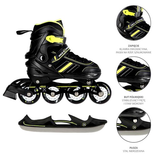 Роликові ковзани NILS Extreme NH18191 зі змінними полозами, регульовані чорні розмір 34-38