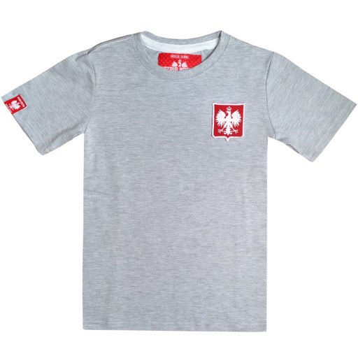 Світло-сірий колір трикотажу - це гідна пропозиція для найменших вболівальників та маленьких патріотів. Сорочка ідеально підійде як для повсякденного використання, так і для спортивних заходів, зокрема матчів польських спортивних команд. Ця модель точно виділить вас серед червоно-білих натовпів!