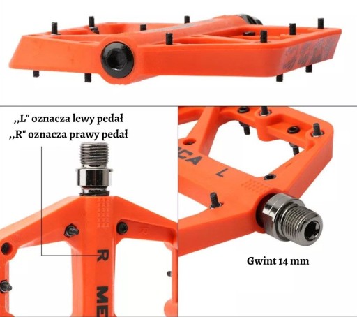 Вони характеризуються легкою нейлоновою конструкцією платформи, оснащеною 16 сталевими змінними штифтами. Низька платформа значно покращує їх зовнішній вигляд, а універсальна різьба і герметичні підшипники роблять педалі придатними для багатьох типів велосипедів.