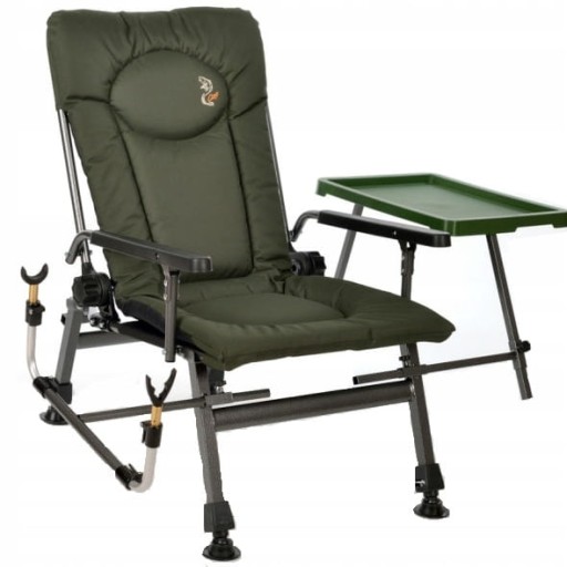 Крісло F5R ST/P є більш розвиненою версією крісла F5R. Крім того, він був оснащений системою кріплення, завдяки якій ви можете встановити зручний столик з регульованою висотою для дрібних рибальських аксесуарів і тримач вудилища з регульованим кутом і регулюванням висоти. Застосувавши ці засоби, ми отримуємо зручне та універсальне крісло.
