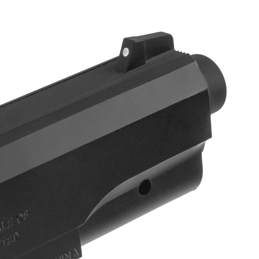 ✅Пістолет має вбудовану під ствол стандартну монтажну планку 22 мм, яка дозволяє прикріпити лазерний приціл або тактичне освітлення. Звичайно, можна цілитися і традиційно - за допомогою мушки і цілика.