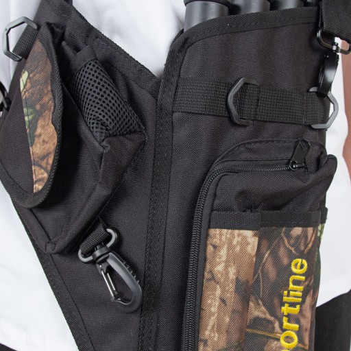 Універсальний колчан для стріл, який можна носити на поясі, на спині або на плечі. Має 4 відділення для стрілок, 2 кишені та знімний ремінь.