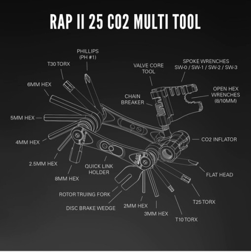 Ручний ключ LEZYNE RAP II 25 CO2, 25 функцій, чорний