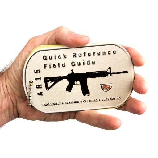 Посібник для AR15 зі сторінками з покриттям, стійким до масел і жирів. У посібнику описані такі дії, як розбирання, чищення, змащування та повторне збирання зброї. Він компактний, важить всього 95 г
