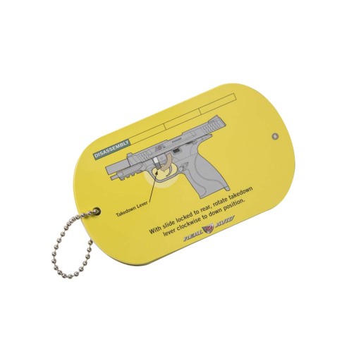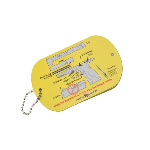 Інструкція для GLOCK зі сторінками з покриттям, стійкими до масел і жирів. У посібнику описані такі дії, як розбирання, чищення, змащування та повторне збирання зброї. Він надзвичайно компактний, важить лише 95 г.