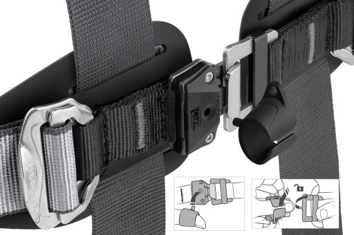- одягання клієнта в упряж полегшується завдяки автоматичним пряжкам FAST, розташованим на задній частині упряжі,