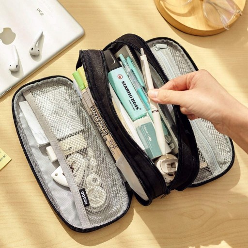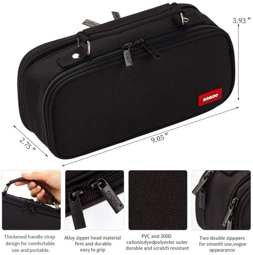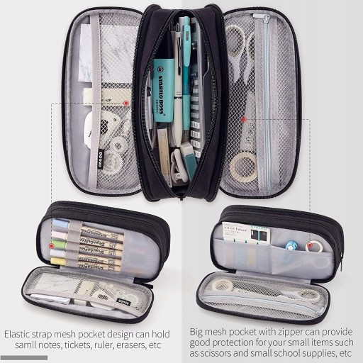 Пенал великої місткості для зберігання канцелярських товарів. Велика сумка для ручок із кількома відділеннями. Портативний косметичний органайзер на подвійній блискавці для старшокласниць, дівчаток-підлітків, дорослих - чорний