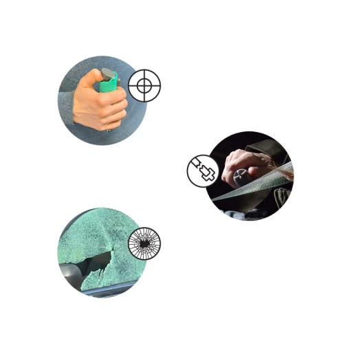 Стрічкоріз дозволяє безпечно, швидко і легко розрізати автомобільні ремені при необхідності. Прикріплений склобій з нержавіючої сталі надійно розбиває вікна автомобіля в кризовій ситуації.