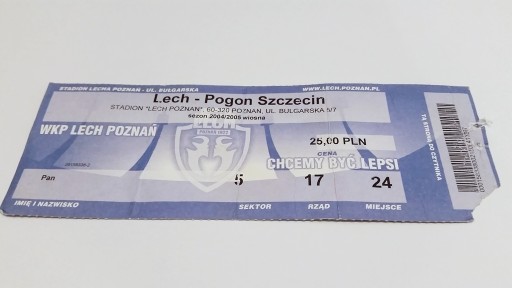 Квиток LECH Познань - POGOŃ Щецин 04.01.2005