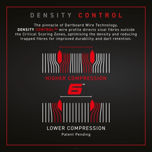 Надтонкий дріт 60° відхиляє дротики в зону заліку для абсолютно мінімального відскоку. Повністю затверділий червоний і зелений центри, оснащені дротом "Density Control™", тепер на 25% тонші.